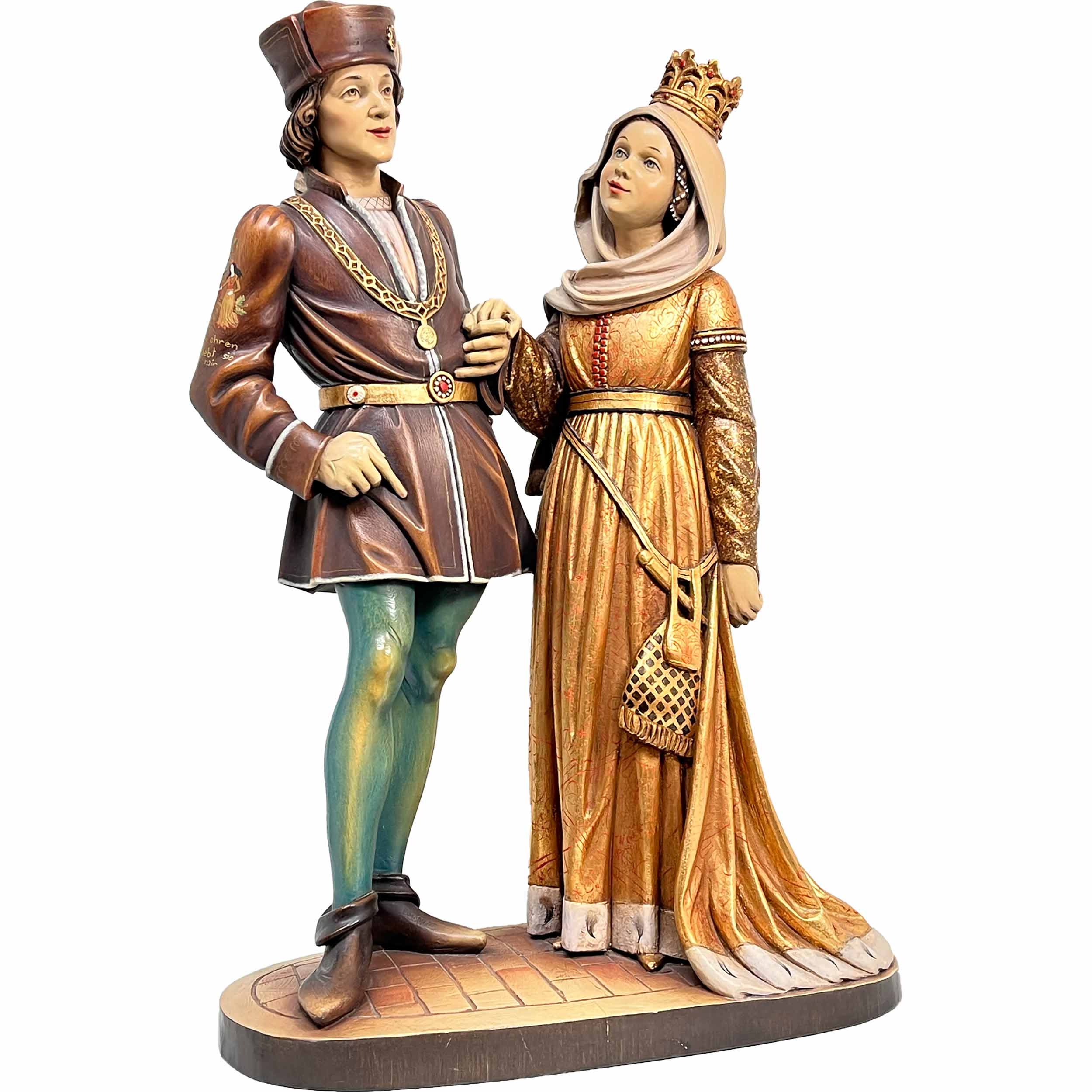 Bereichern Sie Ihr Zuhause oder Büro mit dieser faszinierenden kunsthandwerklichen Darstellung des Landshuter Fürstenpaares. Tauchen Sie ein in die Geschichte und den Charme vergangener Zeiten und genießen Sie die Schönheit und das künstlerische Können, die diese Holzskulptur zu bieten hat. Sichern Sie sich jetzt Ihr Exemplar, bevor es zu spät ist.