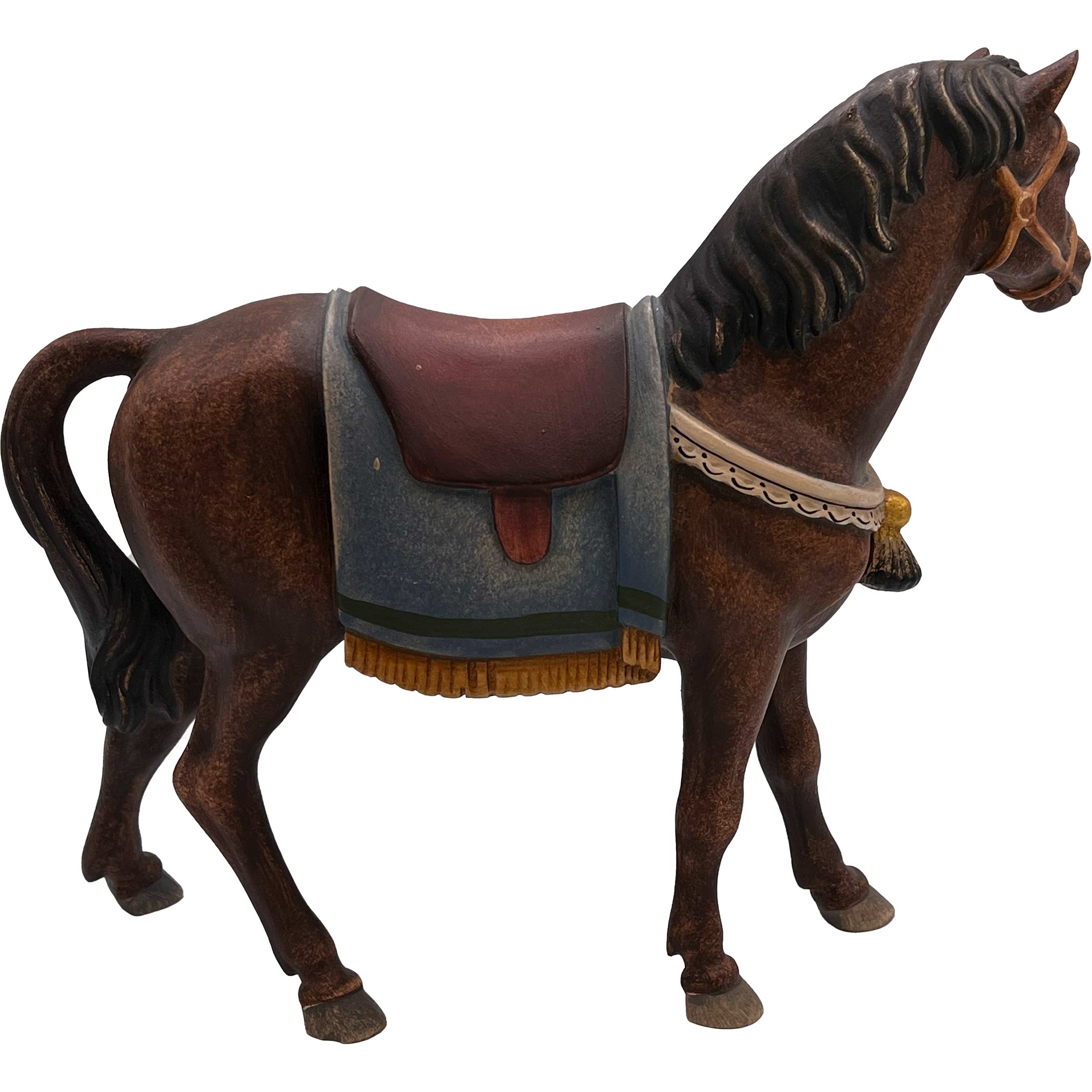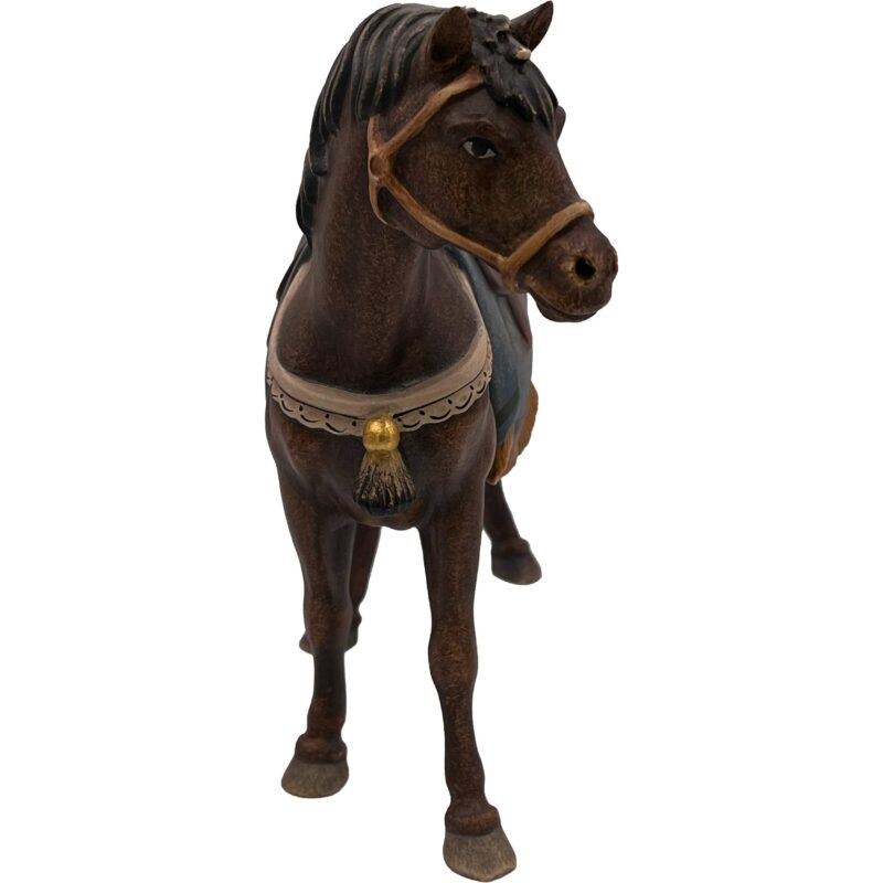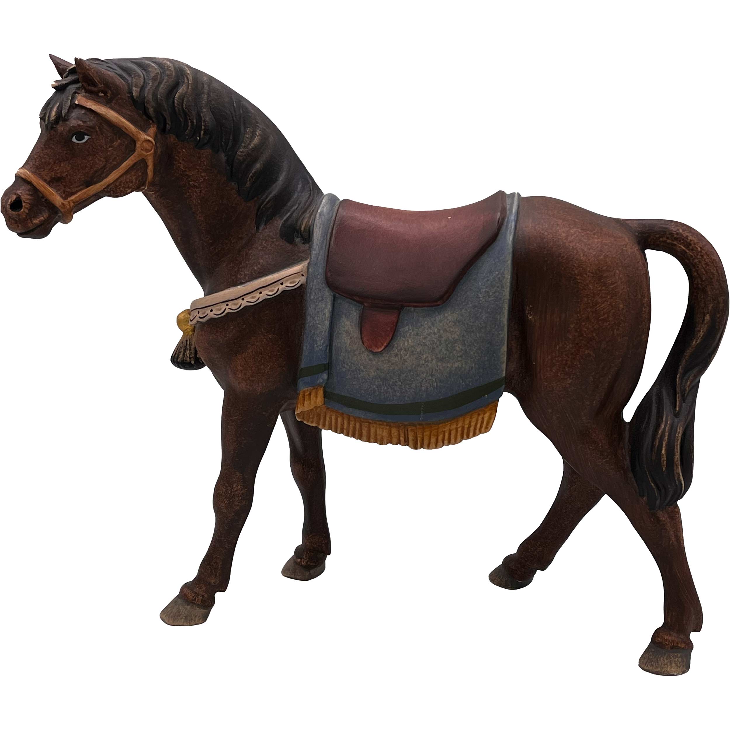 Das gesattelte Pferd des Fürsten ist mit einer Höhe von 21 cm und einer Länge von 25 cm eine imposante Skulptur, die jeden Betrachter in ihren Bann zieht. Die kunstvoll gearbeiteten Details und die liebevoll aufgetragene Farbgebung verleihen diesem Kunstwerk eine lebendige Ausstrahlung.